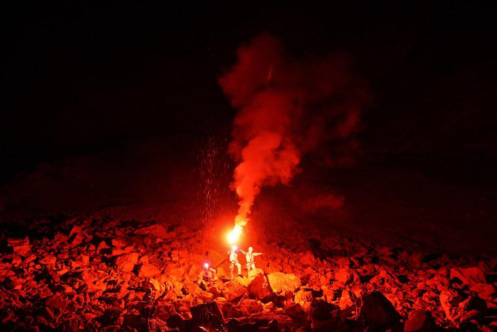 点燃信号弹照亮了洞壁元宝枫资本,犹如到了外太空。